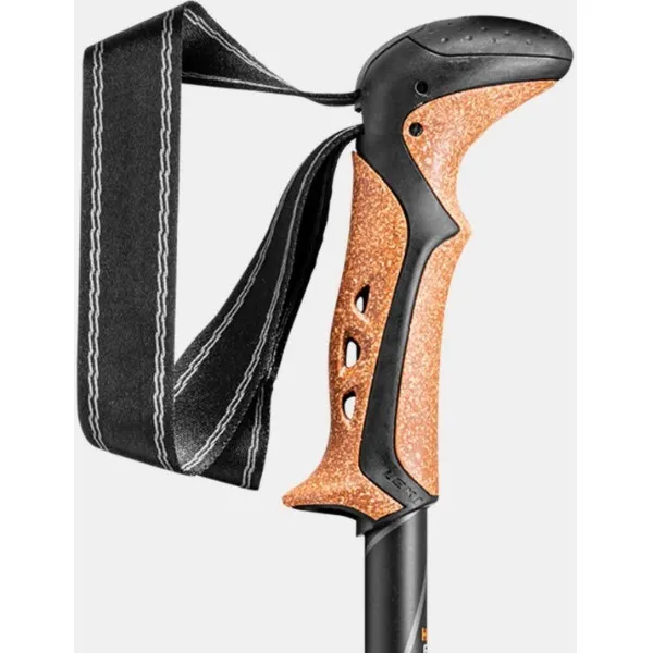De wandelstok is beschikbaar in een moderne en stijlvolle kleurcombinatie van dark anthracite, oranje en zwart.